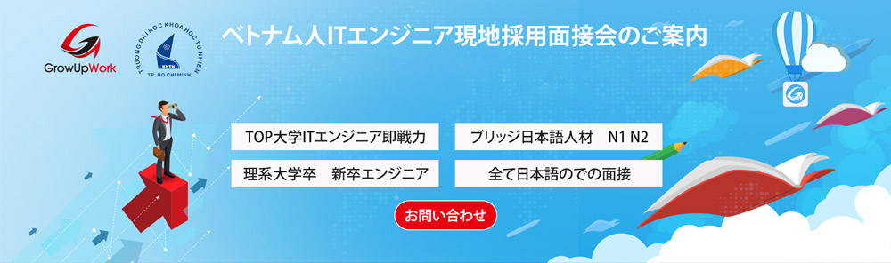 | 2 3歳女性 | ホーチミン自然科学大学卒 | N2 | WEBエンジニア(JAVA、C#, PHP) |